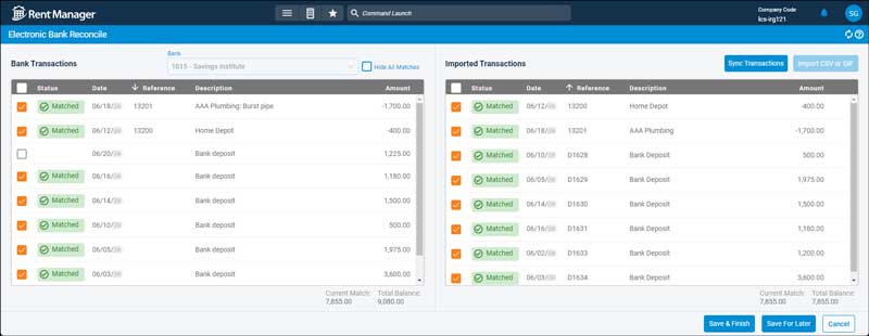 - Automated Bank Reconciliation: Bank Sync allows you to link your real-world bank accounts with Rent Manager to automatically match transactions and simplify monthly reconciliations. See if your bank is compatible with Bank Sync below.